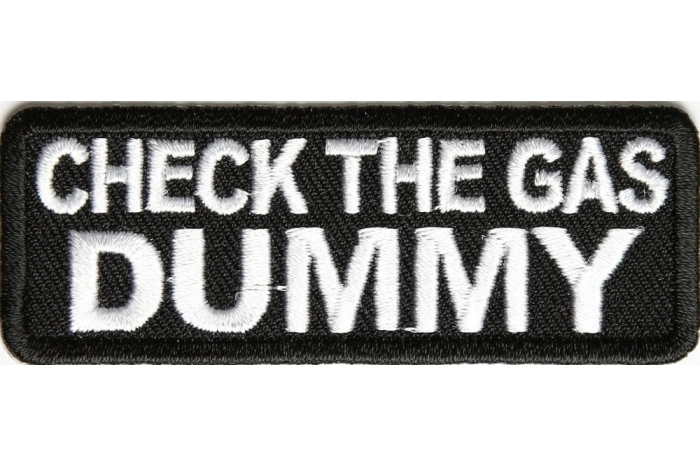 A patch to take the piss out of new bikers trying to start their bike only to fail because they have the tank off. Say "Check the Gas Dummy" with this patch. The iron on patch is embroidered in white over black and measures 3x1 inches. The patch features die cut borders for a clean look. You can sew it on to your leather vest or jacket, press it on to hats, shirts, jeans or even canvas belts. Start making your clothes unique with a patch and get some attention.