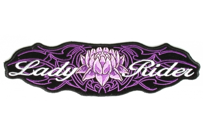 This is a truly beautiful patch for all you lady riders out there. If you want something to look fantastic on your clothing then the ‘Lady Rider Purple Tribal Design’ patch is the perfect choice. This black patch comes with a fabulous design in stunning purple embroidery and is emblazoned with the words ‘Lady Rider’. It can be sewn on to all materials and the thick die cut borders will make this job a breeze. You can also choose to iron it on instead to all non leather materials. The 8 x 2.5 inch patch will look perfect when applied to the top of your jacket or vest.