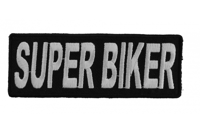 Super Biker Patch is embroidered. Features plastic iron on backing. Measures 4x1.5 inch. Colors used are Black / White The patch can be ironed on or sewed on to your clothing. Please do not iron on patches to leather or nylon material. A heat press is necessary to properly adhere the patch using the iron on method of application. Using a household iron will not produce professional results and the badge will most likely come off after a few washes. Both heat and pressure are a must to properly iron on a patch. We always recommend you sew on these patches to your clothes for a permanent attachment. The die cut borders featured on these emblems makes it very easy for them to be sewn on.