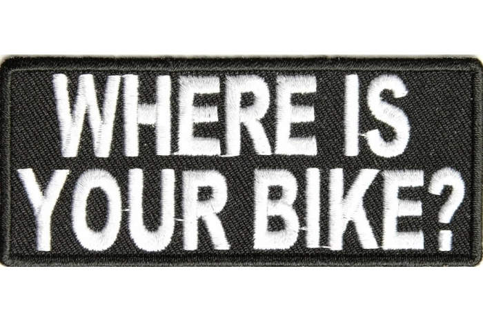 This is a funny biker patch that says "Where is your bike?". Golden rule, No bike means no biker, so where is your bike?