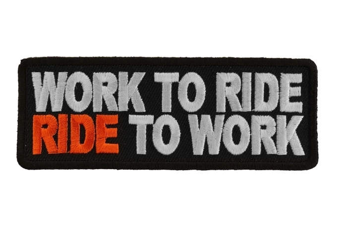 Can't really get a bike unless you work for it. So ride to work and work to ride. A motorcycle is a real motivation to work for one. The highlight of your long working day is the ride to and back from work. And must say I don't mind taking a detour on the way back from work to enjoy a few more minutes of peace and loudness before sticking my head through the door of my house and facing my wifes moodiness, especially when it is that time of the month. The iron on patch measures 4x1.5 inches. Embroidered in white and orange over black fabric with die cut borders. Sew it or iron it on. I spend the extra few cents to make sure they get a treatment of heat activated glue applied to the plastic backing so they stay on once pressed on properly. Did you know they are people out there that will tell you their patches are iron on just because they have a plastic backing on them. Well surely the plastic is going to melt and adhere to the fabric, but throw it in the wash, lets see if lasts a cycle. I guarantee you are getting a great quality patch at a bottom low price.