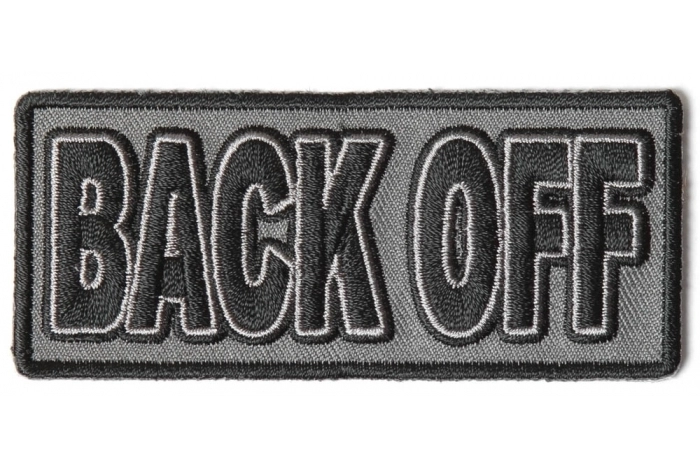 BACK OFF Patch is embroidered in black with a grey background. Measures 3.5x1.5 inches. Sew or iron on but be sure not to iron on to leather or nylon material. Look into getting a whole sale account and buying them cheaper.