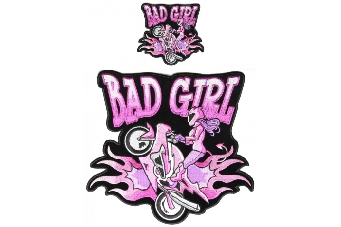- Bad Girl Patches 2 Piece Small and Large Lady Biker Patch Set