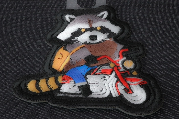 Biker Raccoon Motorcycle Patch Embroidered measures 2.63x3 inches and is Embroidered in Black / Brown. The patch can be sewn on to Leather Biker Jackets, Vests or Chaps. The patch can also be ironed on to Shirts, Hats or Denim material such as Jeans. Features plastic iron on backing and clean laser cut embroidered borders. Japanese made iron on glue requires temperature between 270-290 Degrees Fahrenheit. Use a heat press for 30 seconds to adhere the patch permanently to your clothing. Using a regular household iron will probably not be as permanent as one hopes. If possible we recommend you sew on your patches for a more durable application. Never iron on patches to Leather or Nylon materials.