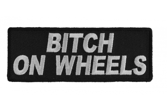Bitch on Wheels Iron on Patch measures 4x1.5 inches and is embroidered in Black / White . You can sew or iron on this patch to your clothing. Never iron on patches to leather or nylon material. Need a custom patch? We can make them given you want at least 20 pieces. Want to resell our patches? Get a wholesale account and buy patches wholesale from The Cheap Place.