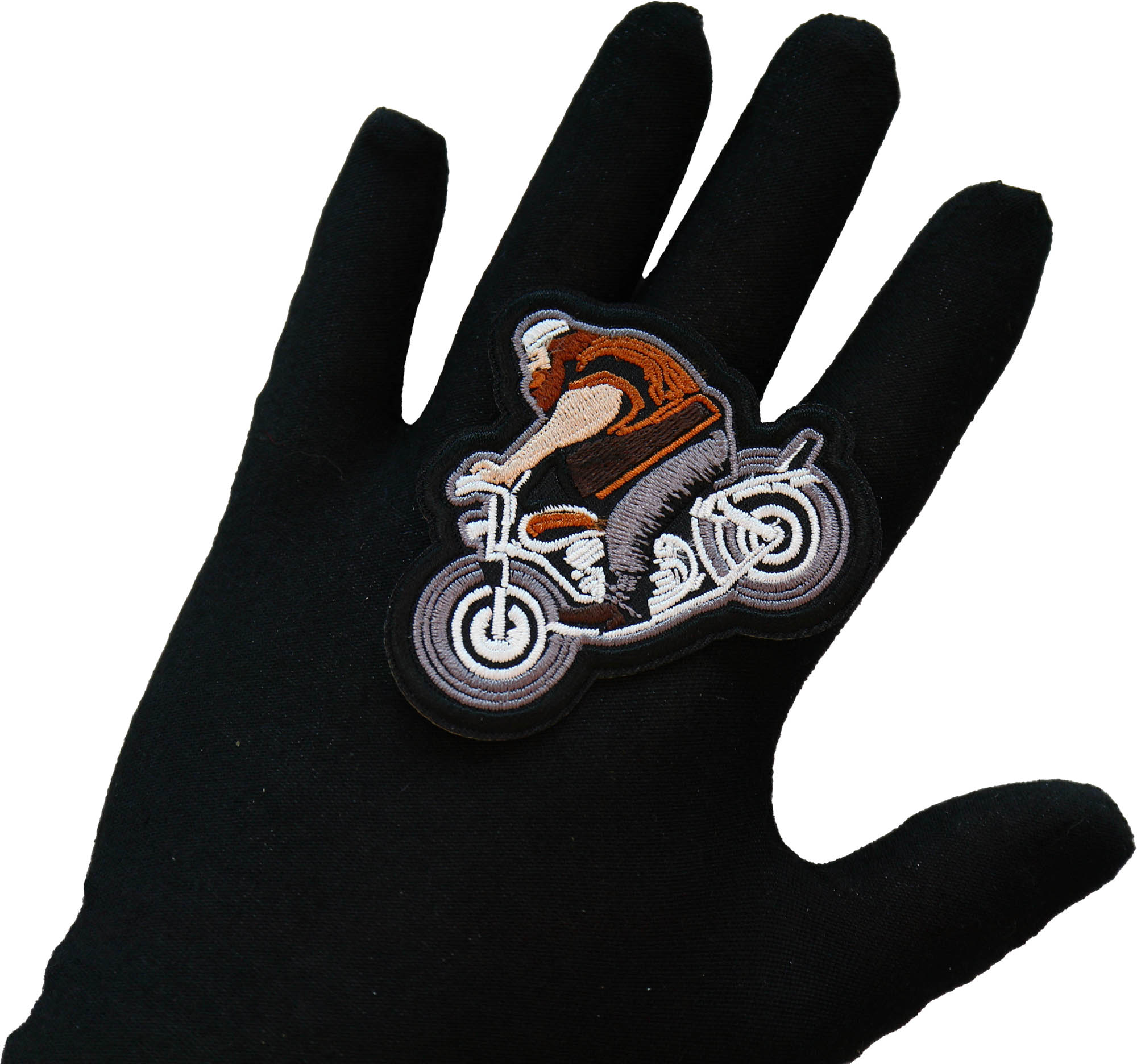 Fat Biker Motorcycle Patch Embroidered measures 3x2.63 inches and is Embroidered in Black / Brown. The patch can be sewn on to Leather Biker Jackets, Vests or Chaps. The patch can also be ironed on to Shirts, Hats or Denim material such as Jeans. Features plastic iron on backing and clean laser cut embroidered borders. Japanese made iron on glue requires temperature between 270-290 Degrees Fahrenheit. Use a heat press for 30 seconds to adhere the patch permanently to your clothing. Using a regular household iron will probably not be as permanent as one hopes. If possible we recommend you sew on your patches for a more durable application. Never iron on patches to Leather or Nylon materials.