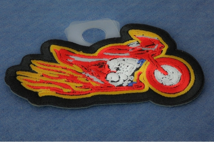 Flaming Crotch Rocket Motorcycle Patch measures 3x1.88 inches and is Embroidered in Black / Red / Orange / Yellow. The patch can be sewn on to Leather Biker Jackets, Vests or Chaps. The patch can also be ironed on to Shirts, Hats or Denim material such as Jeans. Features plastic iron on backing and clean laser cut embroidered borders. Japanese made iron on glue requires temperature between 270-290 Degrees Fahrenheit. Use a heat press for 30 seconds to adhere the patch permanently to your clothing. Using a regular household iron will probably not be as permanent as one hopes. If possible we recommend you sew on your patches for a more durable application. Never iron on patches to Leather or Nylon materials.