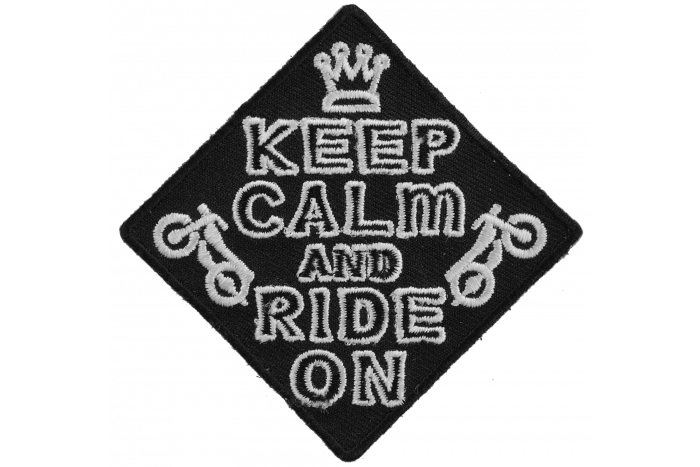 Keep Calm and Ride On Patch is embroidered in Black / White. Measures 3x3 inches. The patch can be sewn or ironed on. Do not iron on patches to leather or nylon material. Buy them cheaper with a wholesale account. Resell them on Ebay.