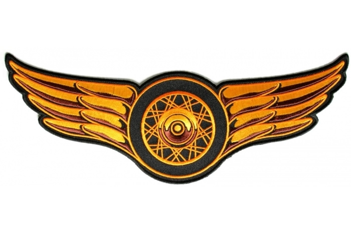 11x4 inch embroidered patch for the upper or lower back of your jacket or vest. Design of a motorcycle orange wheel wing wings embroidered on the sides. The Biker Patch can be ironed on too. This large Bike Wheel with the Orange wings also comes in a white version too. Will go well sewn on the top or bottom back