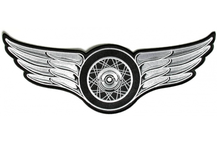 11x4 inch embroidered patch for the upper or lower back of your jacket or vest. Design of a motorcycle white wheel wing wings embroidered on the sides. The Biker Patch can be ironed on too.