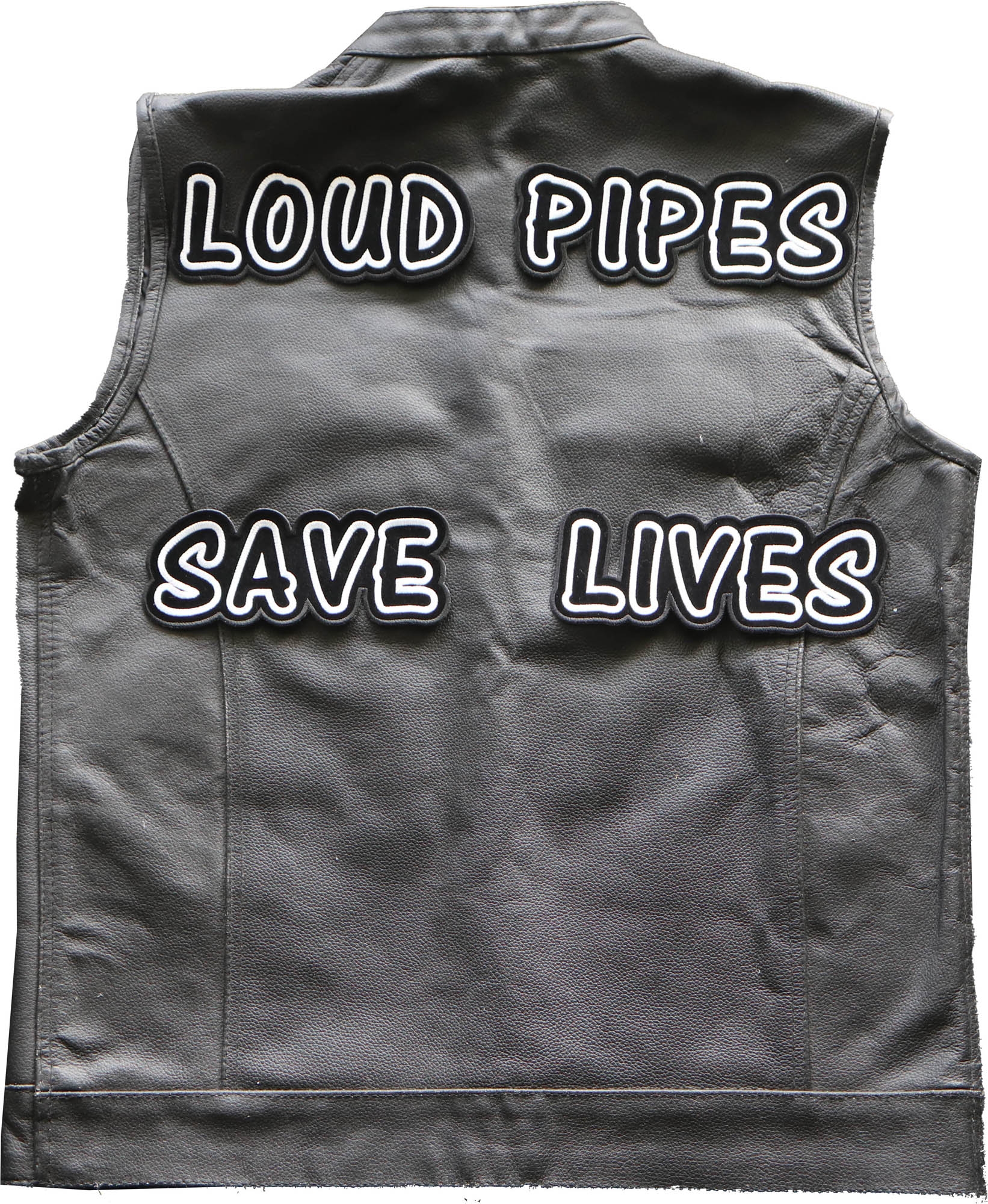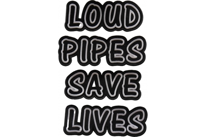 This is a 4 piece patch set that includes the words LOUD PIPES SAVE LIVES individually cut out so you can place them in unique ways to your jacket or vest.
