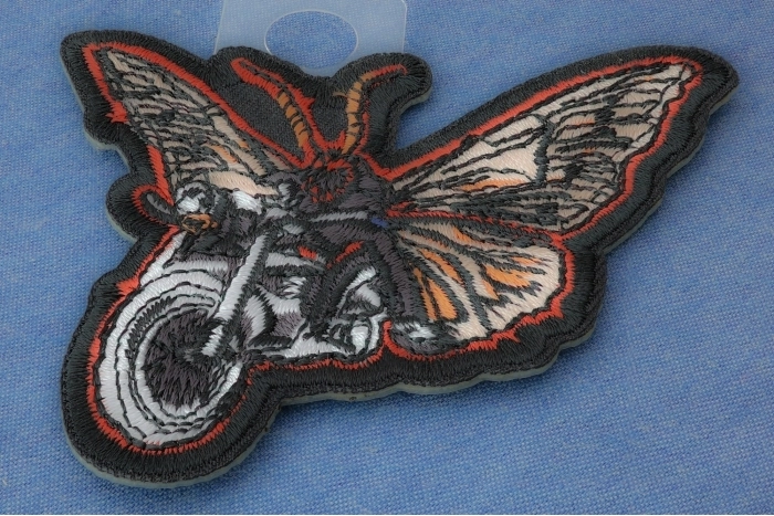 Moth Biker Iron on Patch measures 3x2.75 inches and is Embroidered in Black / Brown. The patch can be sewn on to Leather Biker Jackets, Vests or Chaps. The patch can also be ironed on to Shirts, Hats or Denim material such as Jeans. Features plastic iron on backing and clean laser cut embroidered borders. Japanese made iron on glue requires temperature between 270-290 Degrees Fahrenheit. Use a heat press for 30 seconds to adhere the patch permanently to your clothing. Using a regular household iron will probably not be as permanent as one hopes. If possible we recommend you sew on your patches for a more durable application. Never iron on patches to Leather or Nylon materials.