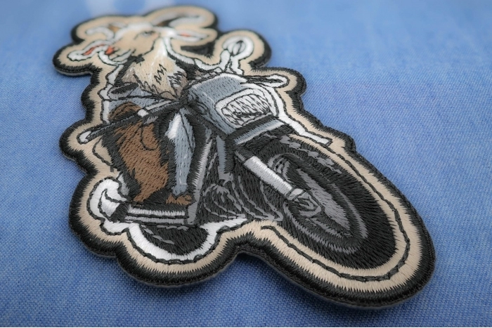 Goat on Bike Patch measures 2.3x4 inches and is Embroidered in Black / Brown. The patch can be sewn on to Leather Biker Jackets, Vests or Chaps. The patch can also be ironed on to Shirts, Hats or Denim material such as Jeans. Features plastic iron on backing and clean laser cut embroidered borders. Japanese made iron on glue requires temperature between 270-290 Degrees Fahrenheit. Use a heat press for 30 seconds to adhere the patch permanently to your clothing. Using a regular household iron will probably not be as permanent as one hopes. If possible we recommend you sew on your patches for a more durable application. Never iron on patches to Leather or Nylon materials.