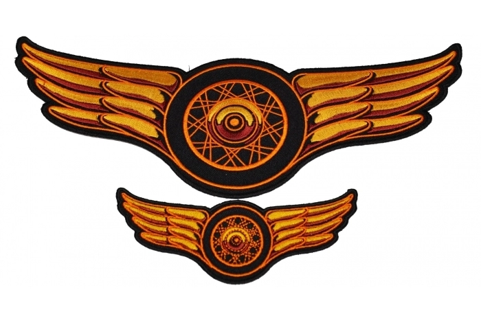 Orange Motorcycle Wheel Spokes and Wings Small Large Patch Set