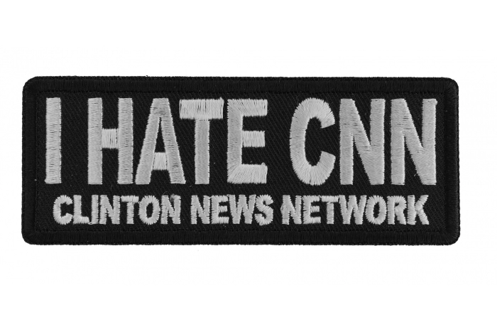 I Hate CNN Clinton News Network Patch measures 4x1.5 inches and is Embroidered in Black / White. The Small Patch can be sewn on or ironed on to clothing such as Denim or Leather Jackets, Vests, Hats, Back Packs, Shirts. Features plastic backing and embroidered die cut borders.