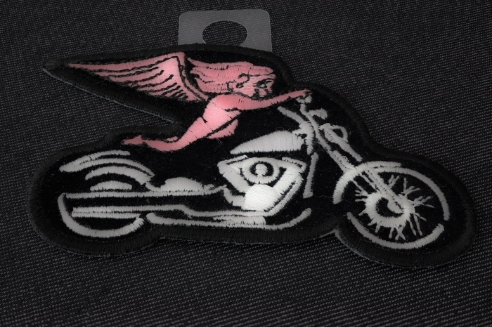 The new angel design by Ben Baron riding a motorcycle. The embroidered patch measures 3.75x2.5 inches. This version is embroidered in white only. We decided to make a few different versions with a yellow or a pink angel riding. Support our family of designers by purchasing genuine patches from TheCheapPlace.com where we don't sell any fakes