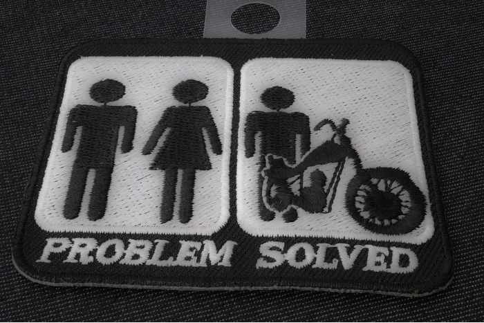 Problem Solved Marriage and Motorcycle Funny Biker Patch - 3x2.75 inch