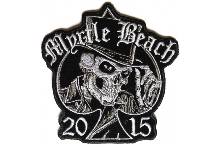 Myrtle Beach 2015 Patch Tall Hat Skull - 4x4 inch