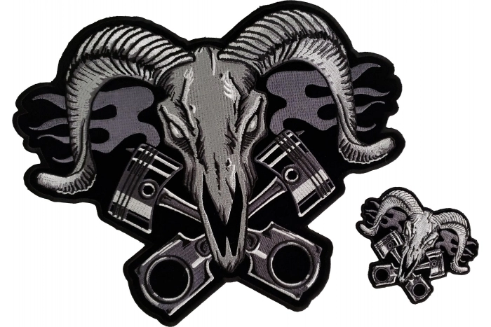 Ram and Pistons Biker Patch Set of Small and Large - 4 - 12 inches