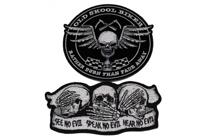 Set of 2 Old School Skull Biker Patches - 4 - 4.5 inches