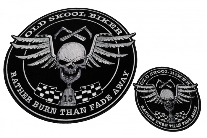 Set of 2 Small and Large Skull Wings Old Skool Biker Patches - 4 - 9 inches