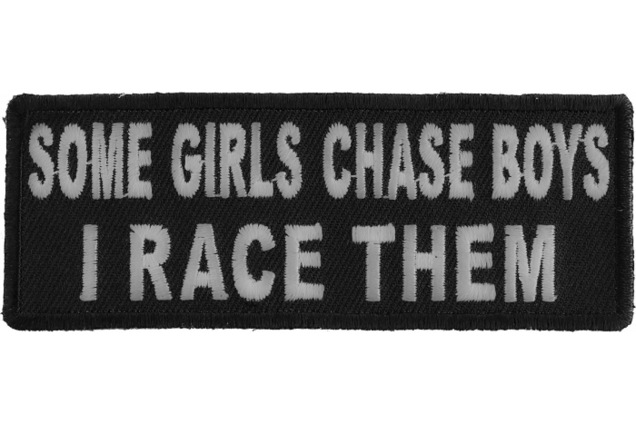 Some Girls Chase Boys I Race Them Patch - 4x1.5 inch