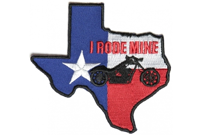 Texas I Rode Mine Patch measures 4x2.9 inches and is Embroidered in Red / White / Blue / Black. The Small Patch can be sewn on or ironed on to clothing such as Denim or Leather Jackets, Vests, Hats, Back Packs, Shirts. Features plastic backing and embroidered die cut borders.