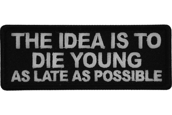 The Idea is to Die Young as Late as Possible Patch - 4x1.5 inch