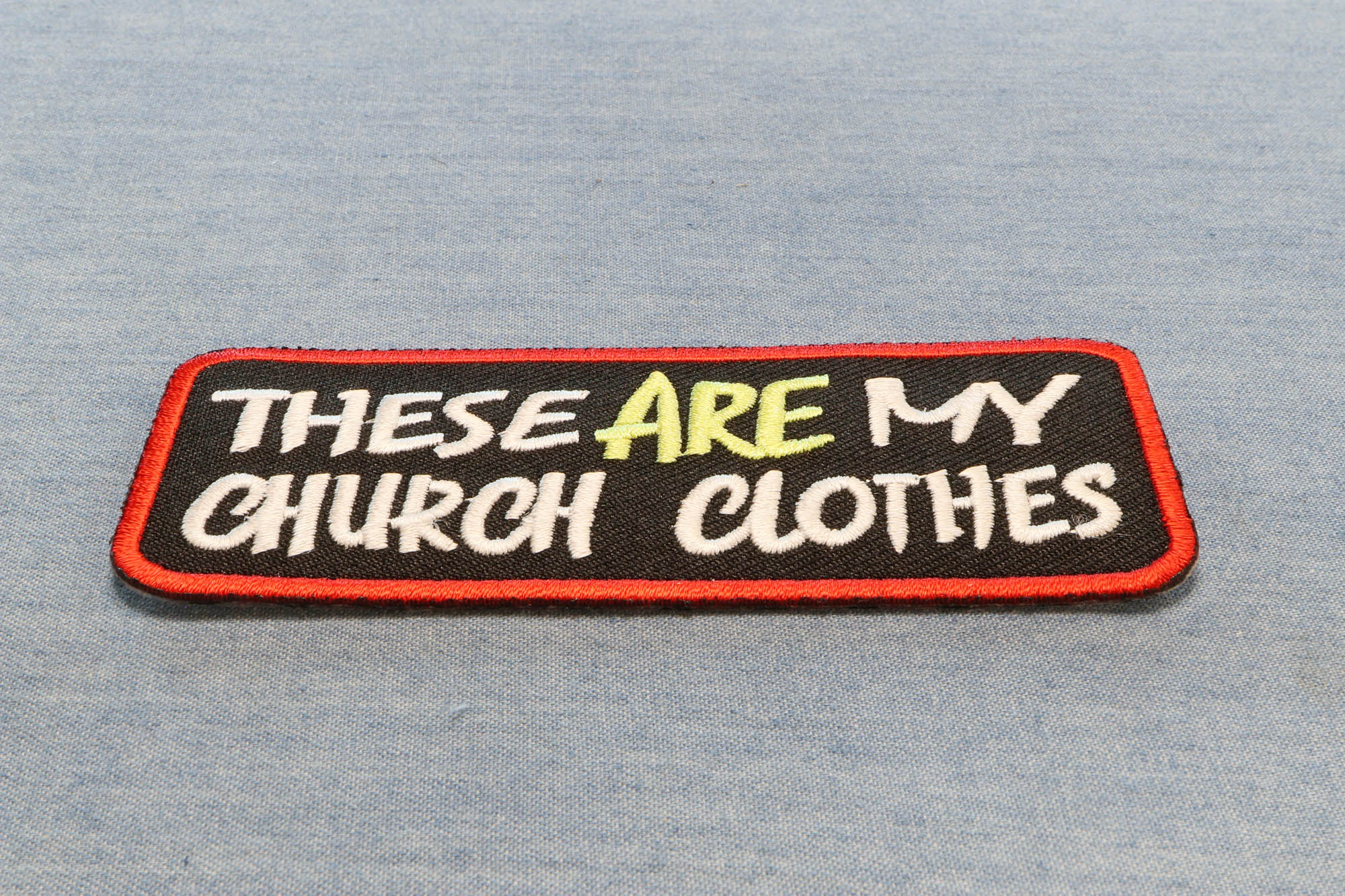 - These are my church clothes is a funny patch to sew on your leather vest when you are all geared up to ride to Church on Sunday morning.