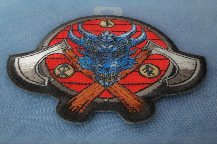Viking Dragon and Axes Patch measures 4.4x3.6 inches and is Embroidered in Black / Red / Blue / Gray / Brown. The patch can be sewn on to Leather Biker Jackets, Vests or Chaps. The patch can also be ironed on to Shirts, Hats or Denim material such as Jeans. Features plastic iron on backing and clean laser cut embroidered borders. Japanese made iron on glue requires temperature between 270-290 Degrees Fahrenheit. Use a heat press for 30 seconds to adhere the patch permanently to your clothing. Using a regular household iron will probably not be as permanent as one hopes. If possible we recommend you sew on your patches for a more durable application. Never iron on patches to Leather or Nylon materials.