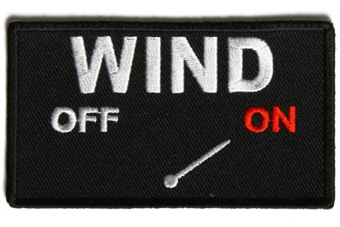 Wind Mode On Patch measures 3.5x2 inches and is Embroidered in Black / White / Red. The Small Patch can be sewn on or ironed on to clothing such as Denim or Leather Jackets, Vests, Hats, Back Packs, Shirts. Features plastic backing and embroidered die cut borders.