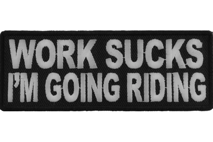 Work Sucks I'm Going Riding Patch is embroidered in Black / White. Measures 4x1.5 inches. The patch can be sewn or ironed on. Do not iron on patches to leather or nylon material. Buy them cheaper with a wholesale account. Resell them on Ebay.
