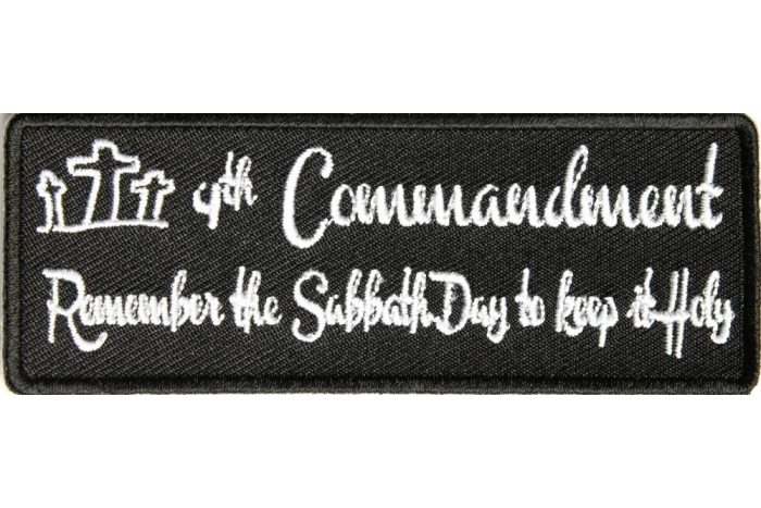 4th Commandment Patch is embroidered in white over black. Remember the Sabbath Day to keep it Holy. Measures 4x1.5 inches.