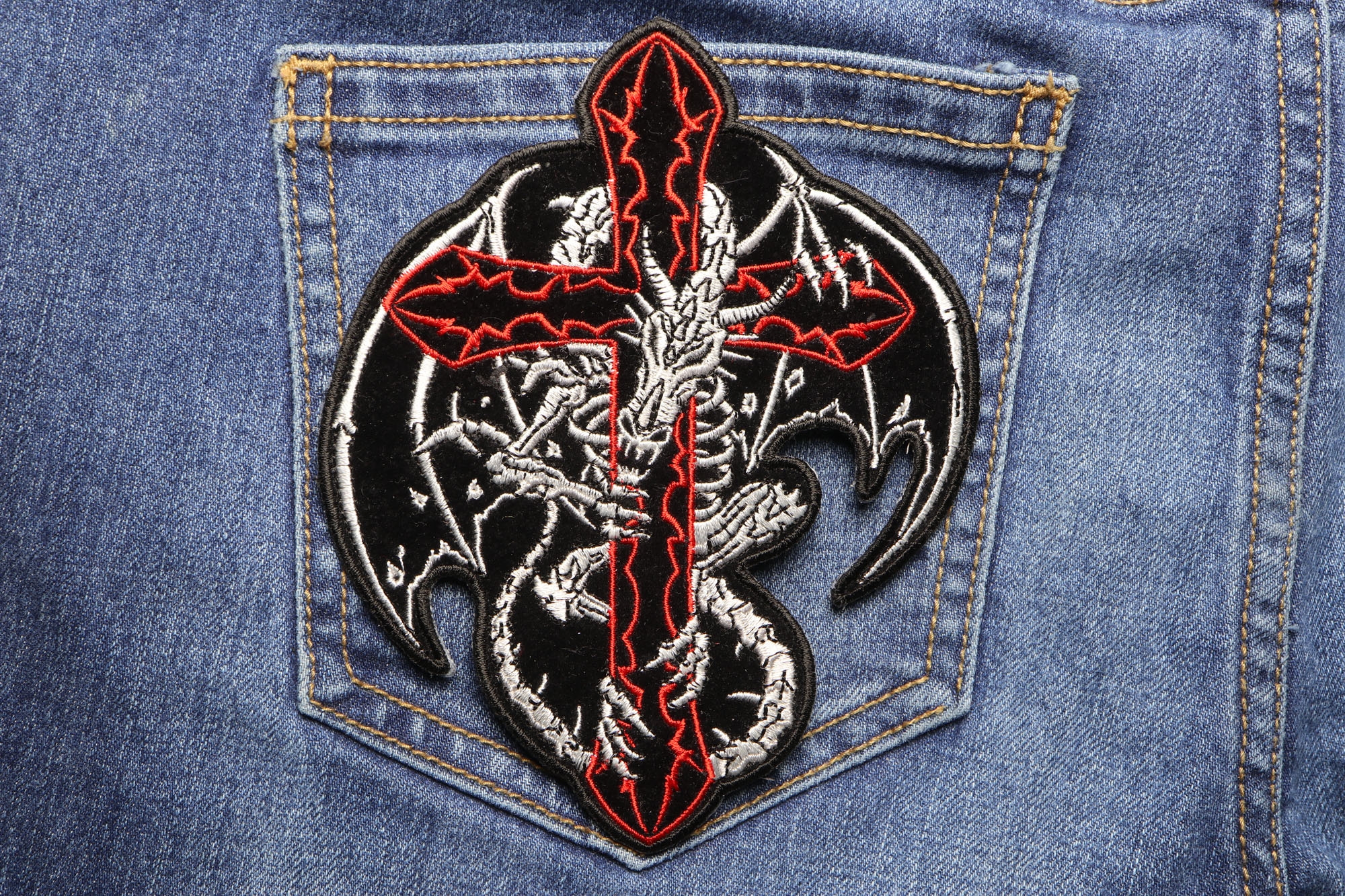 Dragon Skeleton Over Cross Patch - 4.5x5.5 inch
