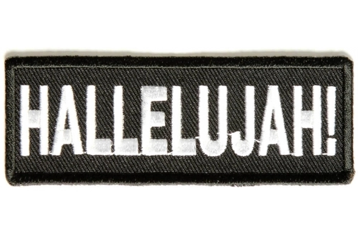 Say Hallelujah one more time with this patch embroidered in white over black. Measures 3.5x1.25 inches.
