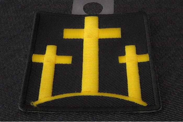Black and Yellow Three Crosses Christian Patch - 2.25x2.5 inch