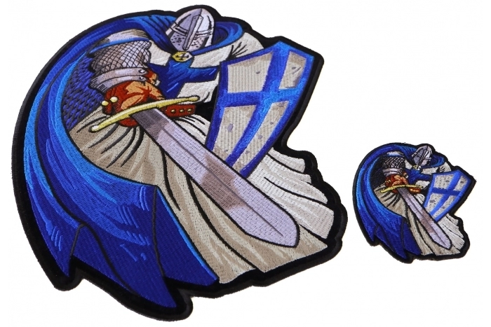 - Blue Caped Crusader Knight Templar Small and Large Christian Patch Set