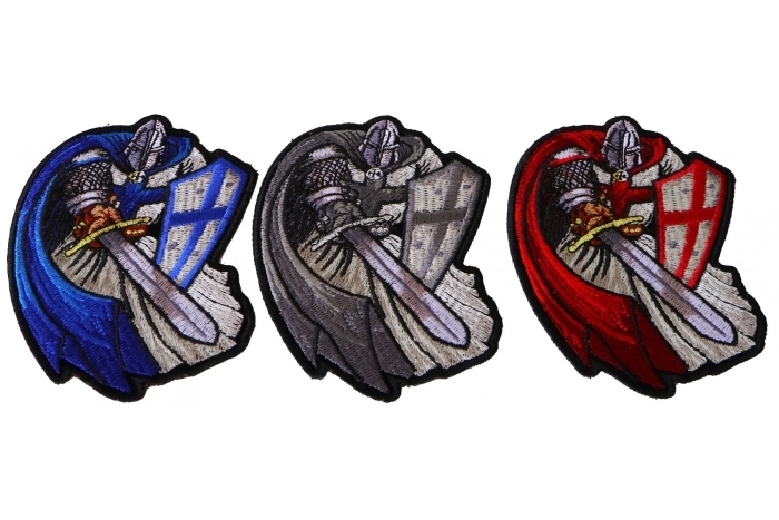 - Blue Red and Gray Cape Crusader Knights Templar Small Iron on Christian Patches