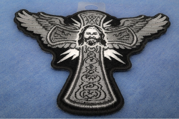 Jesus Cross and Wings Iron on Patch - 4.5x3.5 inch