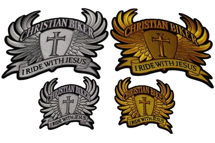 - Set of 4 Small and Large, Gold and Silver Christian Biker Patches
