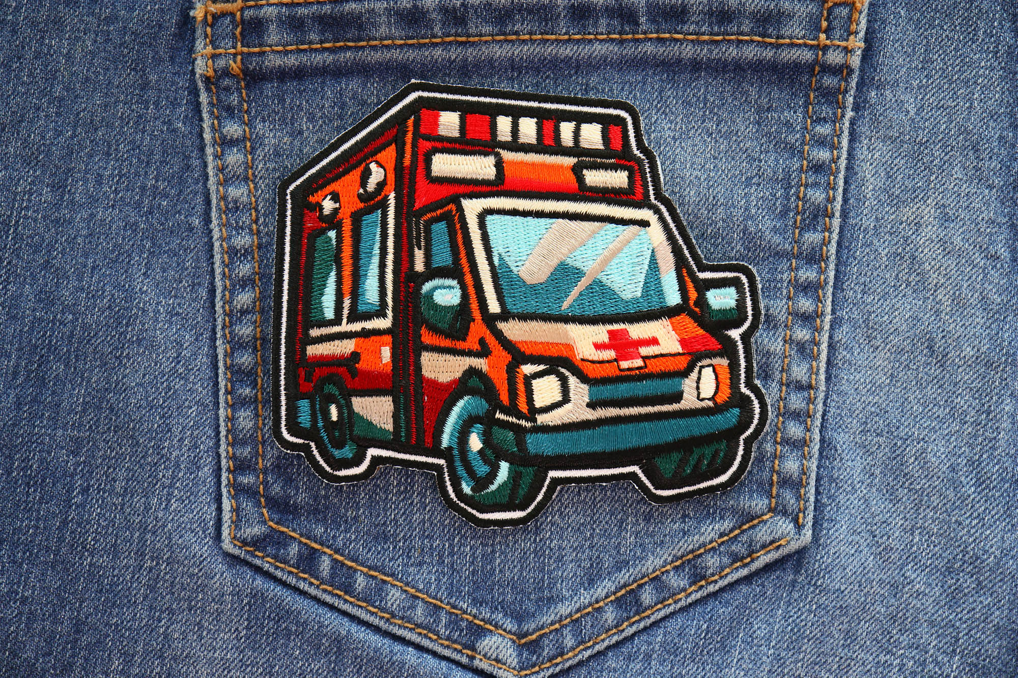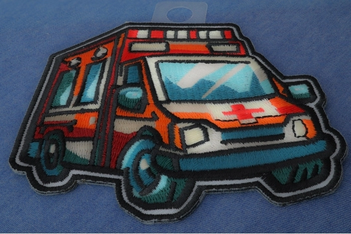 Ambulance Patch measures 4x3.5 inches and is Embroidered in Black / Blue / Red. The patch can be sewn on to Leather Biker Jackets, Vests or Chaps. The patch can also be ironed on to Shirts, Hats or Denim material such as Jeans. Features plastic iron on backing and clean laser cut embroidered borders. Japanese made iron on glue requires temperature between 270-290 Degrees Fahrenheit. Use a heat press for 30 seconds to adhere the patch permanently to your clothing. Using a regular household iron will probably not be as permanent as one hopes. If possible we recommend you sew on your patches for a more durable application. Never iron on patches to Leather or Nylon materials.