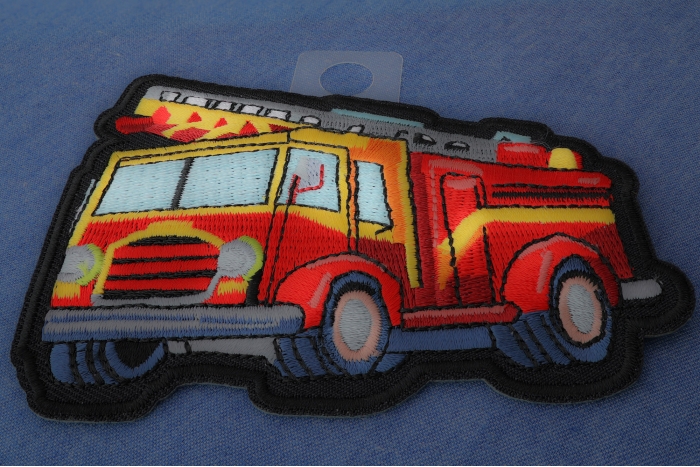 Fire Truck Patch measures 4x3 inches and is Embroidered in Black / Red / Yellow. The patch can be sewn on to Leather Biker Jackets, Vests or Chaps. The patch can also be ironed on to Shirts, Hats or Denim material such as Jeans. Features plastic iron on backing and clean laser cut embroidered borders. Japanese made iron on glue requires temperature between 270-290 Degrees Fahrenheit. Use a heat press for 30 seconds to adhere the patch permanently to your clothing. Using a regular household iron will probably not be as permanent as one hopes. If possible we recommend you sew on your patches for a more durable application. Never iron on patches to Leather or Nylon materials.
