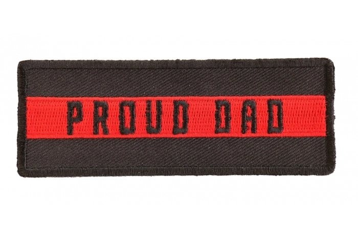 Thin Red Line Proud Dad Patch measures 4x1.5 inches and is Embroidered in Black / Red. The Small Patch can be sewn on or ironed on to clothing such as Denim or Leather Jackets, Vests, Hats, Back Packs, Shirts. Features plastic backing and embroidered die cut borders.