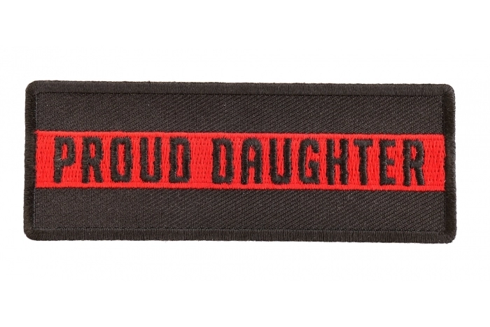 Thin Red Line Proud Daughter Patch measures 4x1.5 inches and is Embroidered in Black / Red. The Small Patch can be sewn on or ironed on to clothing such as Denim or Leather Jackets, Vests, Hats, Back Packs, Shirts. Features plastic backing and embroidered die cut borders.