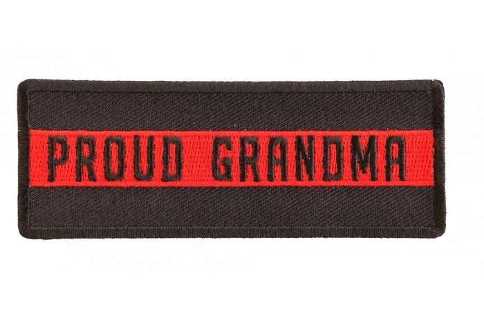 Thin Red Line Proud Grandma Patch measures 4x1.5 inches and is Embroidered in Black / Red. The Small Patch can be sewn on or ironed on to clothing such as Denim or Leather Jackets, Vests, Hats, Back Packs, Shirts. Features plastic backing and embroidered die cut borders.