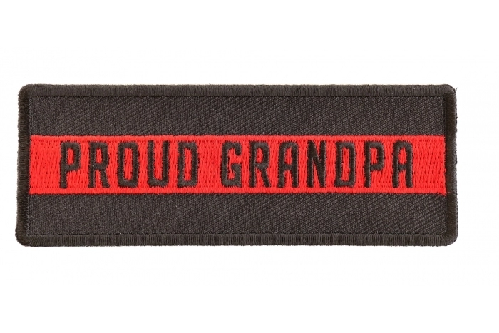 Thin Red Line Proud Grandpa Patch measures 4x1.5 inches and is Embroidered in Black / Red. The Small Patch can be sewn on or ironed on to clothing such as Denim or Leather Jackets, Vests, Hats, Back Packs, Shirts. Features plastic backing and embroidered die cut borders.