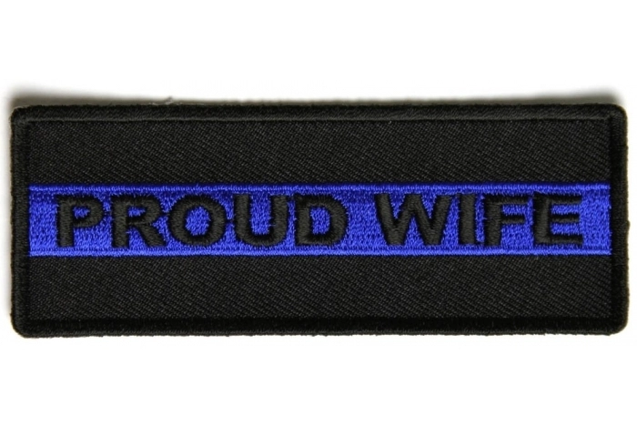 Proud Wife Police Patch measures 4x1.5 inches and is Embroidered in Black / Blue. The Small Patch can be sewn on or ironed on to clothing such as Denim or Leather Jackets, Vests, Hats, Back Packs, Shirts. Features plastic backing and embroidered die cut borders.
