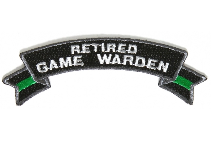 Retired Game Warden Rocker Patch measures 4x1.4 inches and is Embroidered in Black / Gray / Green. The Small Patch can be sewn on or ironed on to clothing such as Denim or Leather Jackets, Vests, Hats, Back Packs, Shirts. Features plastic backing and embroidered die cut borders.