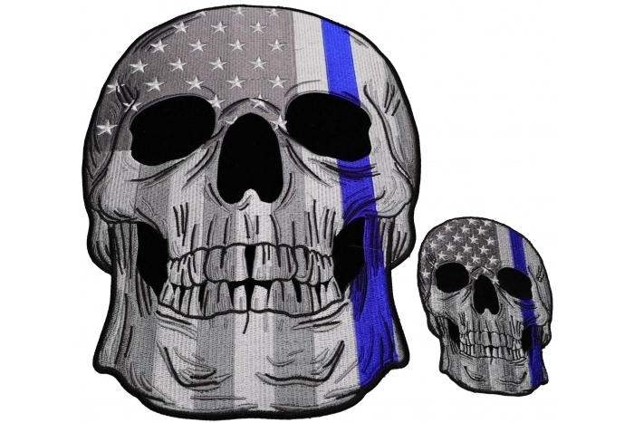 - Set of 2 Small and Large Blue Line Police Skull Patches