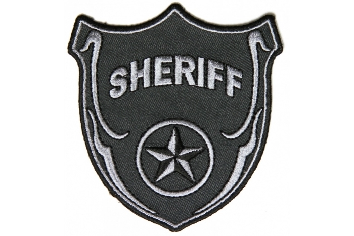 Sheriff Patch in Silver and Gray measures 3x3 inches and is Embroidered in Black / Gray. The Small Patch can be sewn on or ironed on to clothing such as Denim or Leather Jackets, Vests, Hats, Back Packs, Shirts. Features plastic backing and embroidered die cut borders.